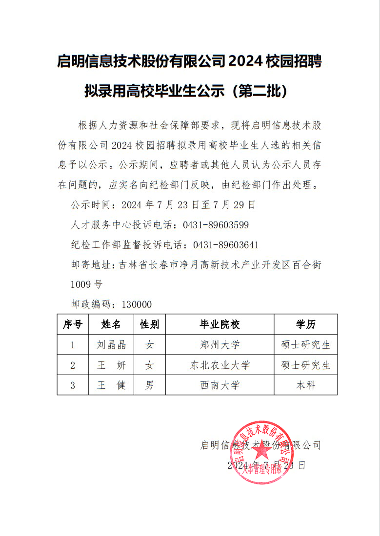 365WM完美体育信息技术股份有限公司2024校园招聘拟录用高校毕业生公示(第二批)