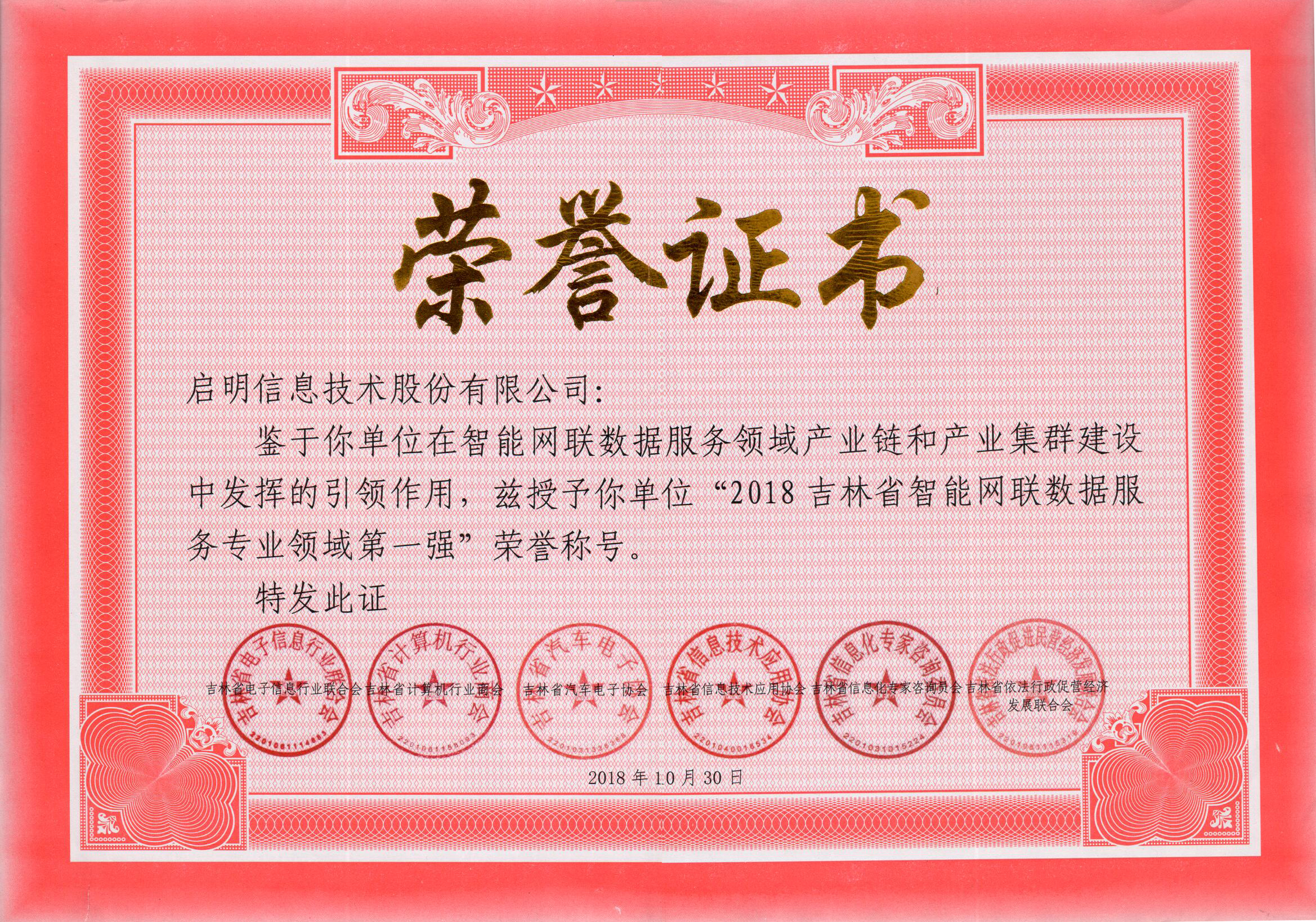 吉林省IT服务十佳企业-2018